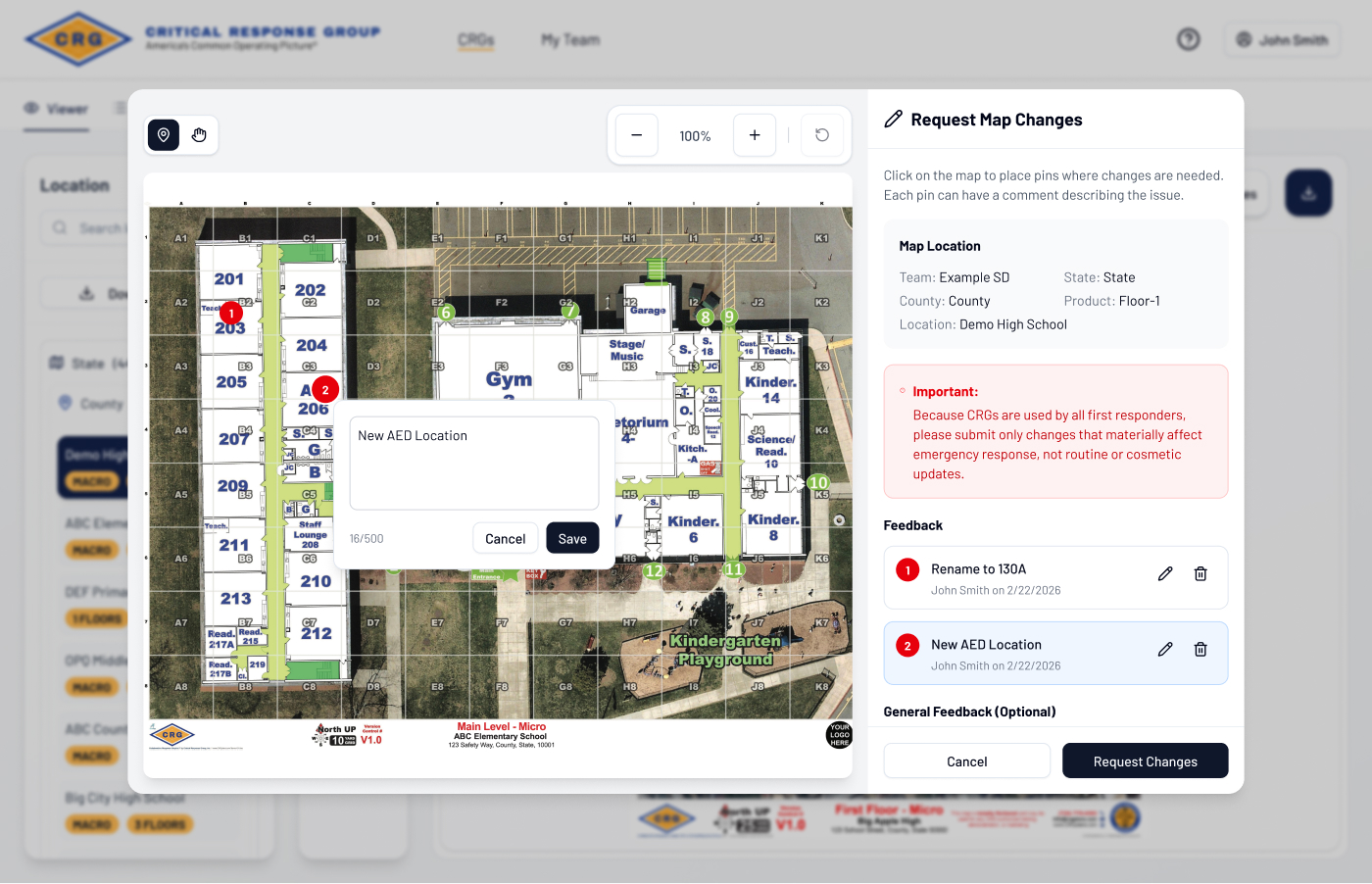 The CRG Portal gives location owners and public safety teams a centralized, secure platform to access, manage, edit, and distribute their Collaborative Response Graphics® — anytime, from anywhere.